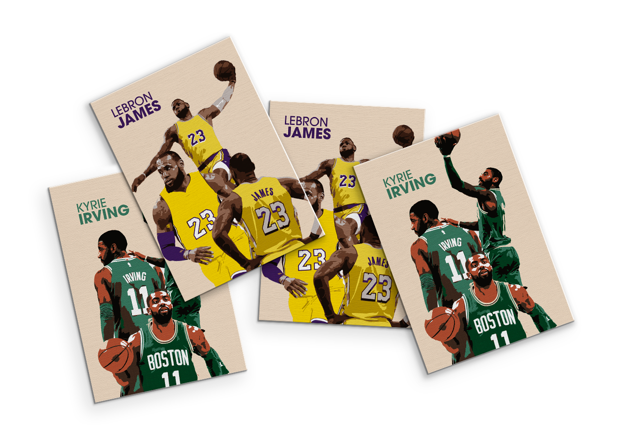 Das Kyrie Irving Basketball-Poster im Vintage-Look ist eine Hommage an den amerikanischen Basketball-Superstar Kyrie Irving. Mit diesem Poster kannst du deine Leidenschaft für den Sport zeigen und deine Wand mit einem beeindruckenden Kunstdruck verschönern.