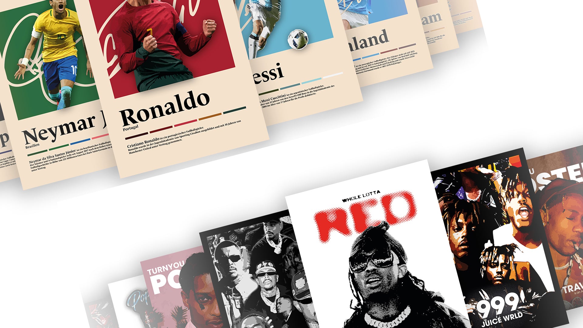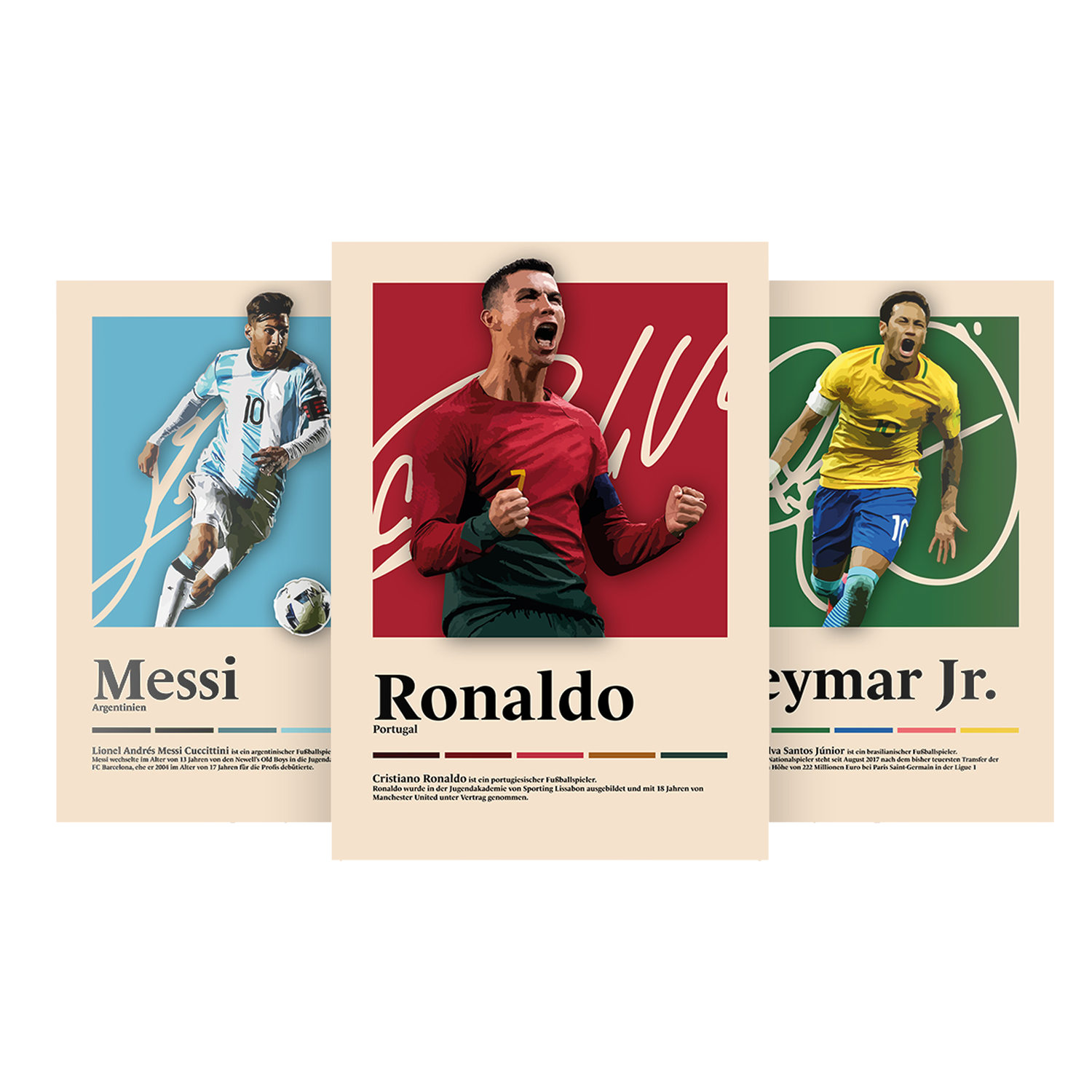 Zeige deine Leidenschaft für den Fussball mit unseren hochwertigen Fussball-Postern. Unsere Poster sind eine Hommage an die Fußballlegenden und ihre unvergesslichen Momente, die uns inspiriert und begeistert haben. Verleihe deinen Wänden mit unseren Postern eine besondere Note und tauche ein in die Welt des Sports.